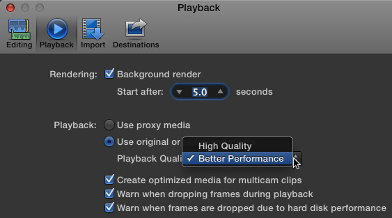 Six streams of XDCAM EX video took 12% of my CPU and 38 MB/second of data during playback. However, XDCAM EX uses MPEG-2 as its compression codec, and can become taxing on your system as the stream count rises. For example, when editing the XDCAM EX footage natively, I could easily edit six streams of video. However, I got a few dropped frame warnings when I quickly jumped around in the Timeline, or cut too quickly. The dropped frame warnings were not serious, but I wanted to see if I could eliminate them.