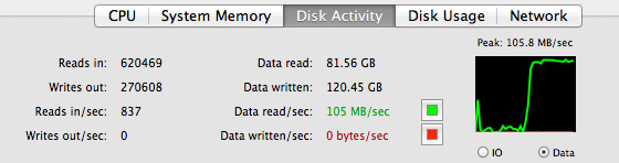 Now, FCP X was pulling more than 100 MB/sec from the G-RAID during the edit.