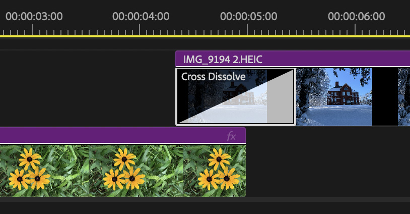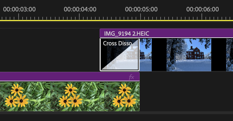 It is easy to think you need to do something about that lower clip. You don’t. Only apply transitions to the upper clip.