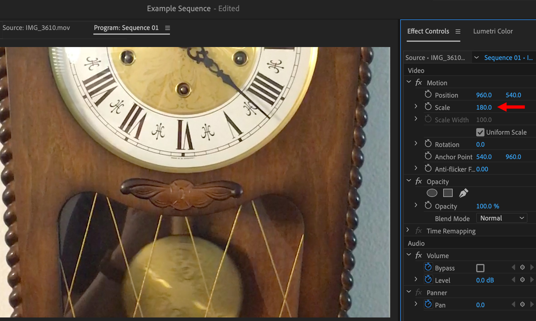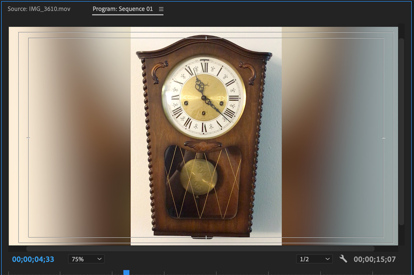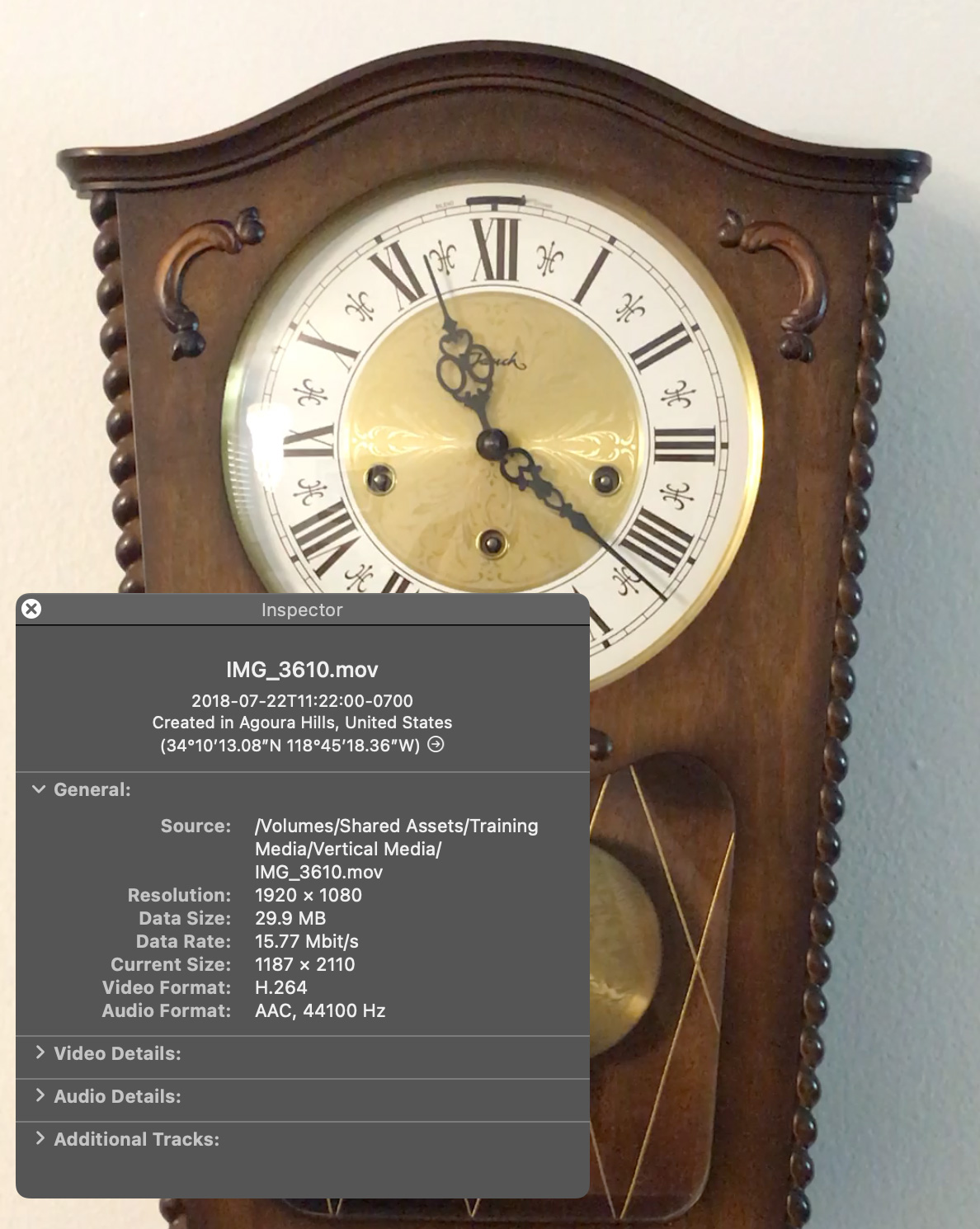 I’ll use this grandfather clock video for this example. Note the vertical height is 2110 pixels.