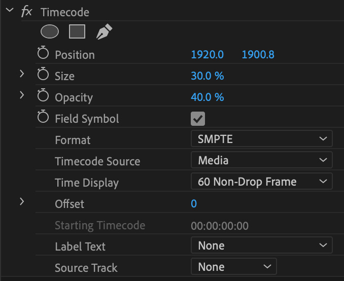 In the Effect Controls panel, scroll down to see the formatting options available for the Timecode effect.