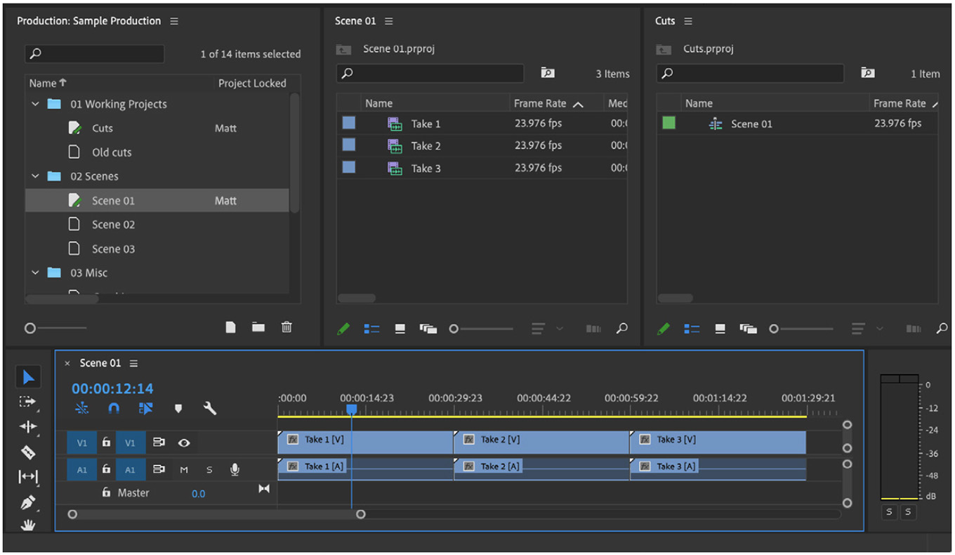 “While Productions are a natural fit for large, complex projects like those found in film & TV, Premiere Pro editors working on projects of any size can benefit from working with Productions.