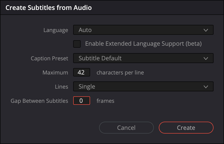 From the Timeline menu in the menubar at the top of your screen, choose AI Tools > Create AI Tools > Create Subtitles from Audio.