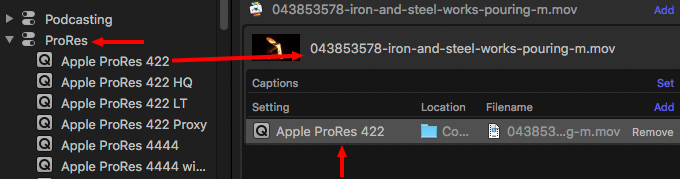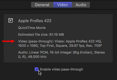 NOTE: Even though we’ve applied the ProRes 422 compression setting, the Info section at the top shows that the exported clip will match the source file, which is ProRes 422 HQ.