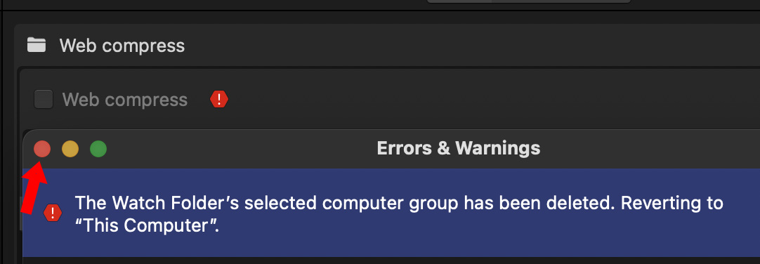 Drag one or more of your soon-to-be watch folders into the interface. (“Web compress” in my example.)