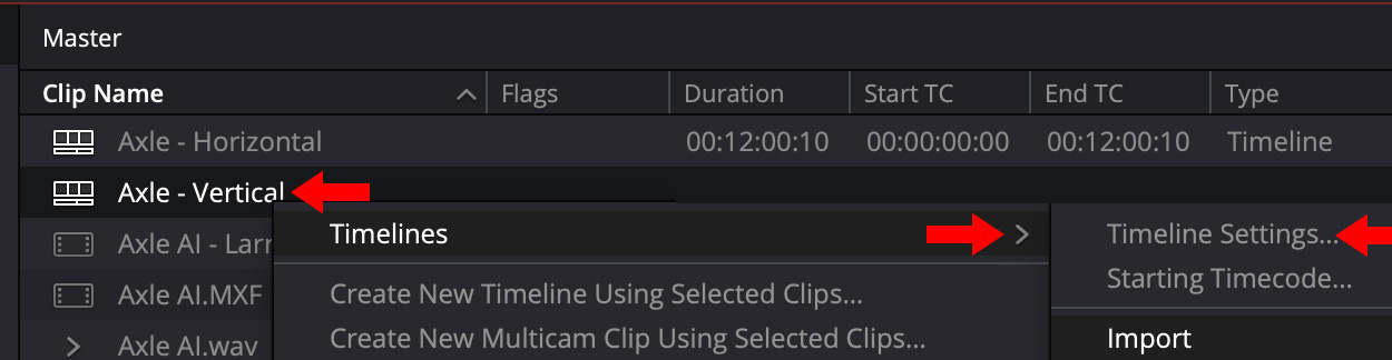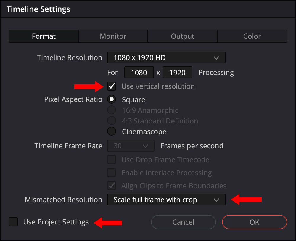 This next step is CRITICAL. If you change the timeline format using Project Settings, EVERY timeline in your project will change.