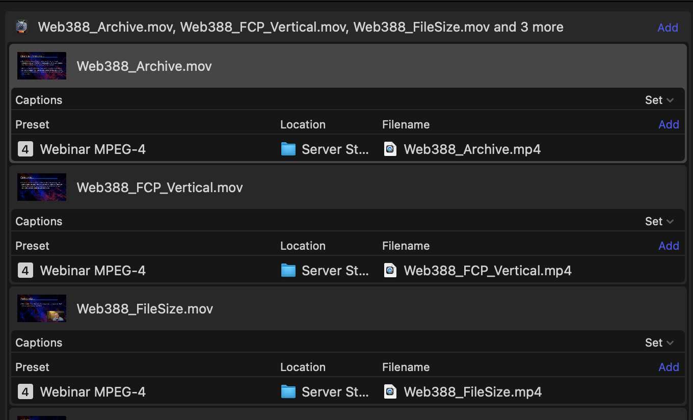 However, when you have multiple editors contributing files on a constant basis, such as I used when recording and streaming my interviews from NAB, I needed a dedicated compression system so that my editors could continue editing without waiting for export.