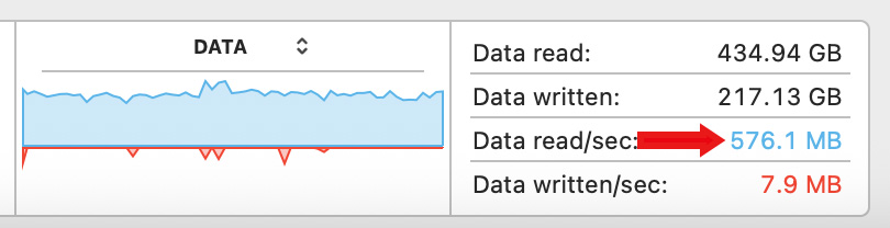 The limiting factor, I think, is not computer speed, but network and server speed. And I ran these tests on a 10G network with a maximum throughput of 750 MB/second.