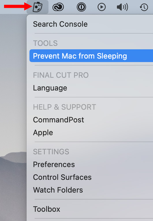 Once installed, it will either launch when you restart your Mac or boot whenever you launch Final Cut. You’ll find a variety of configuration options by clicking its icon in the menu bar (red arrow above).