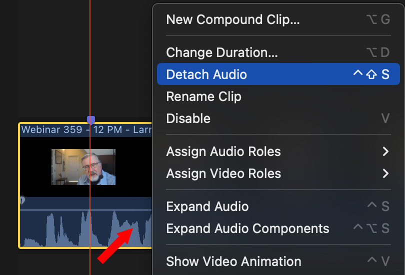 Compound clips are much safer than simply detaching audio, but causes problems if you need to move a project from Final Cut to, say, Adobe Audition for audio mixing, or Premiere for color grading. Adobe applications don’t support FCP compound clips.