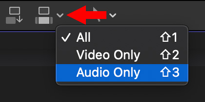 Click this small down arrow to switch between editing audio, video or both from a clip in the Browser to the timeline.