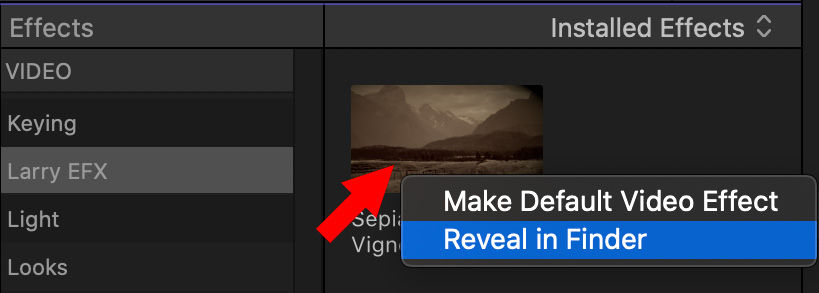 To delete an effect, right-click it and reveal it in the Finder.