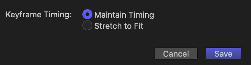 Stretch to Fit is the default setting. Most of the time, I add keyframes after an effect is applied, so I don’t often worry about this setting.