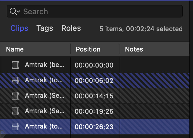 NOTE: Only clips in the currently active project are displayed. This does not search across multiple projects.