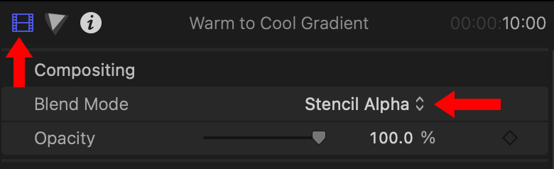 Now, more magic: Select the text clip, then, in the Video Inspector, change Blend Mode to Silhouette Alpha.