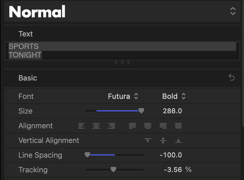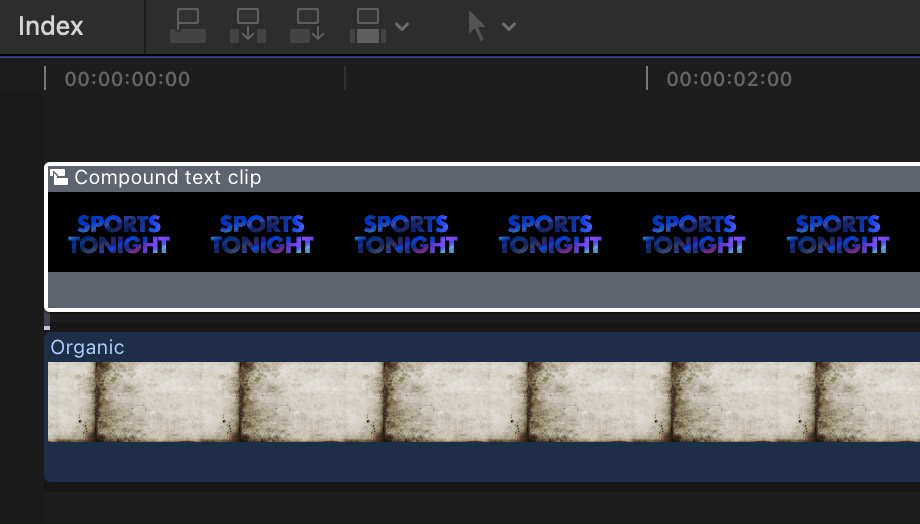 NOTE: Some text templates are actually a motion project and this effect won’t work. For most text effects, I like using Custom text because not only can I apply blend modes, but I can also animate it in a variety of ways using animation built into the text title itself. You’ll find the animation in the Text Inspector.