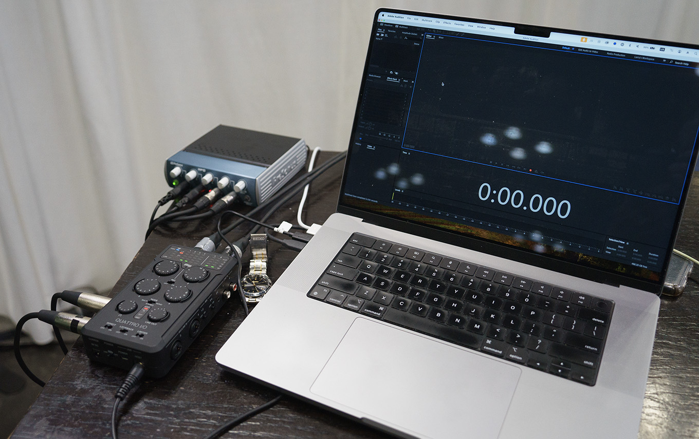 For reasons I’ll go into shortly, I recorded interview audio directly from the iRig into Adobe Audition on my MacBook Pro using a USB-C connection. This process worked perfectly. I created a session for each interview with each mic on its own track.