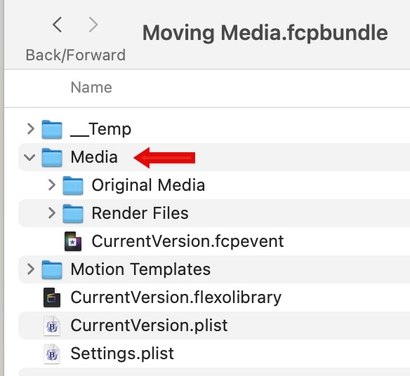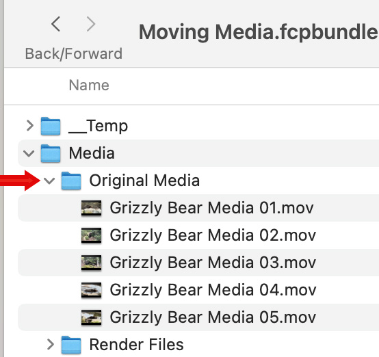 That being said, if you twirl down [ bundle ] > Media > Original Media you’ll see all the original imported media clips used by your project.