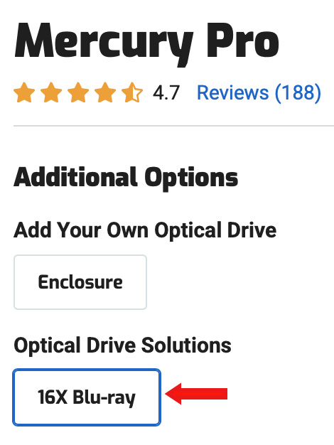 NOTE: On the OWC website, you need to choose the 16X Blu-ray Disc option (see screen shot at right) to get this capability. (Retail price: $179.99 US.)