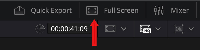 If you are on the Cut, Edit or Color page, the fastest way to display video full screen is to type Cmd + F or P.