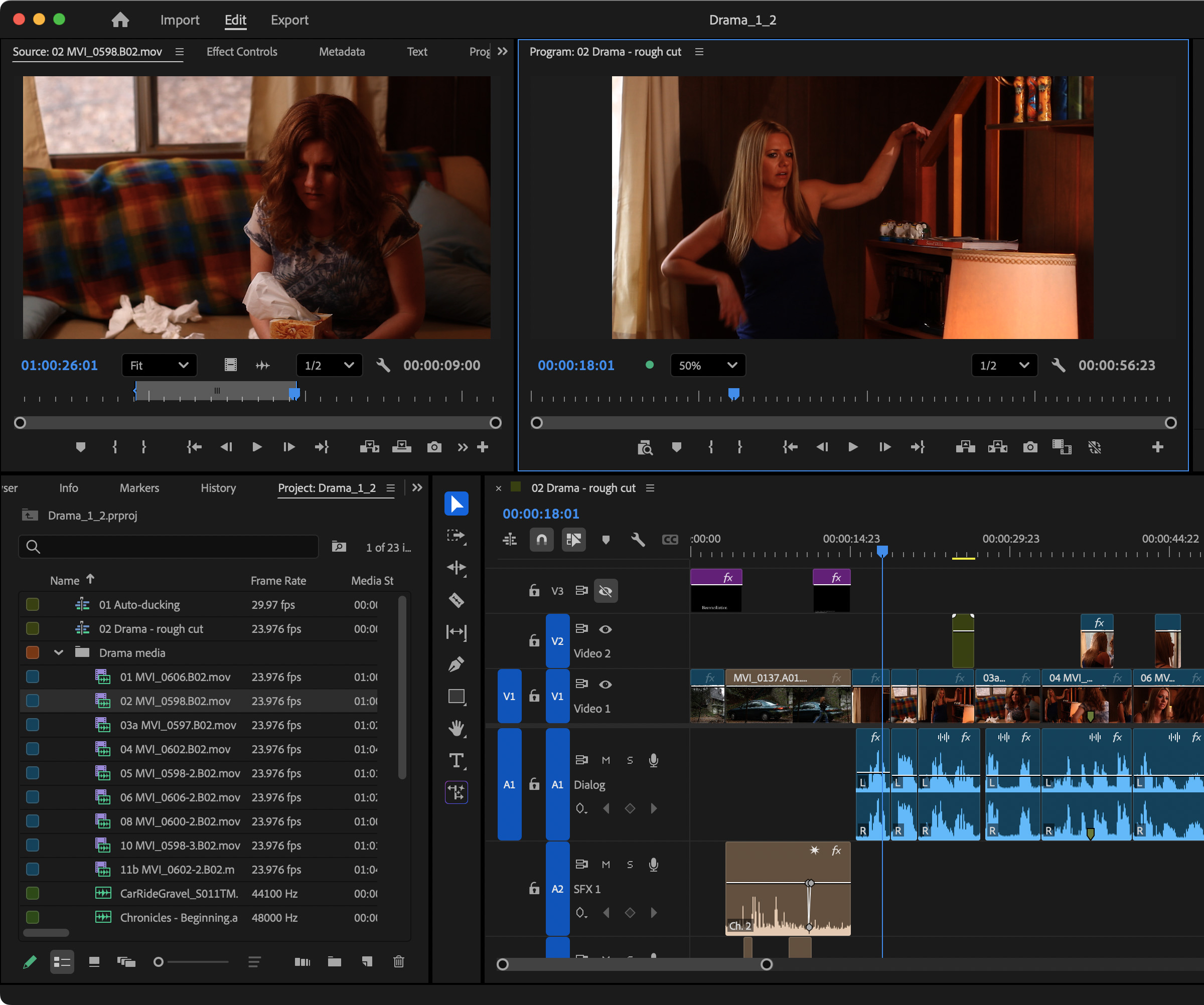 Here’s a project that contains actors, dialog, B-roll, sound effects, music… all the elements of a short drama.