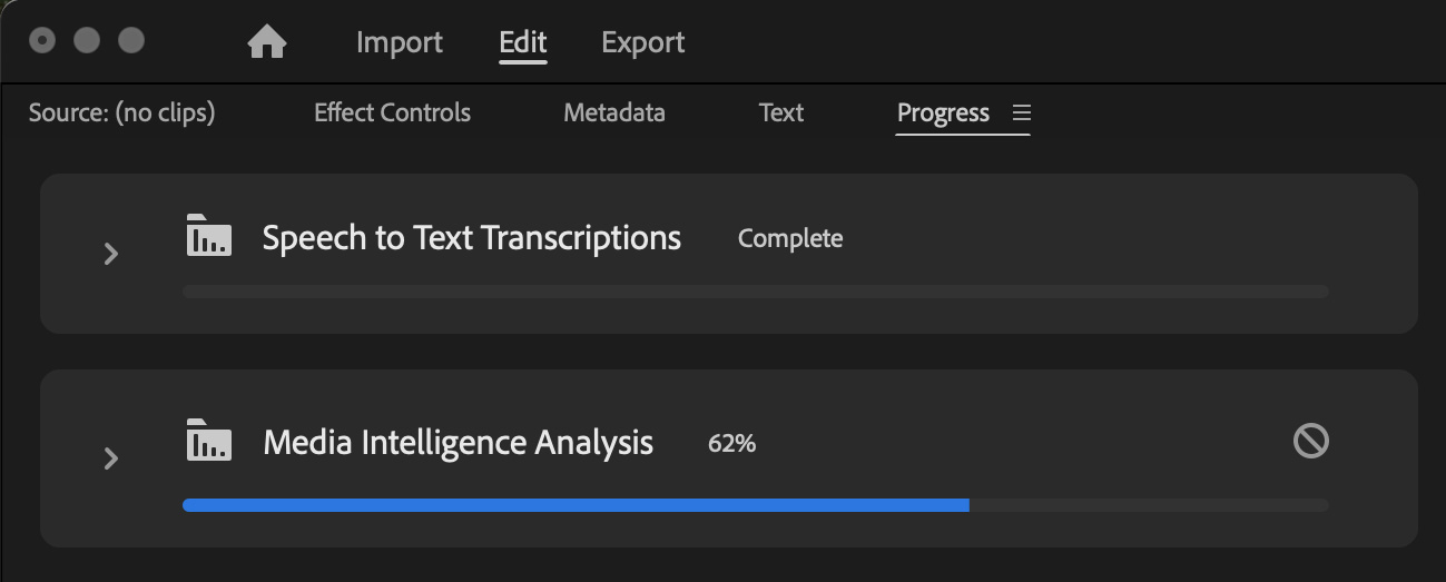 When an existing project is opened, when you import footage, or when you open the Search panel, Premiere analyzes it for content.