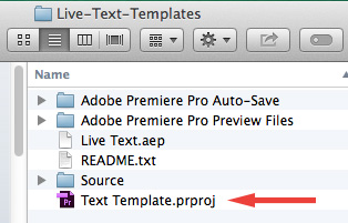 Close any open projects in Premiere, then, inside the Live-Text-Templates folder which you just downloaded, double-click the Text Template project to open it in Premiere.