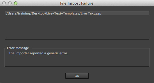 I tried it but the text file developed in after effect does not open and it show the message that ” the importer reported a generic error”