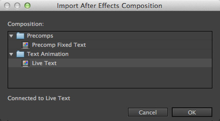 NOTE: Depending upon the speed and configuration of your computer, Premiere may take several seconds to start the Dynamic Link server before you can select an option and finish the import.