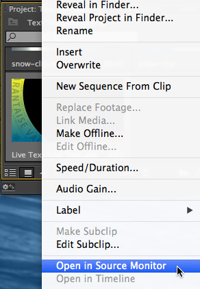 Load the comp into the Source Monitor by right-clicking the icon in the Project panel and select Open in Source Monitor.