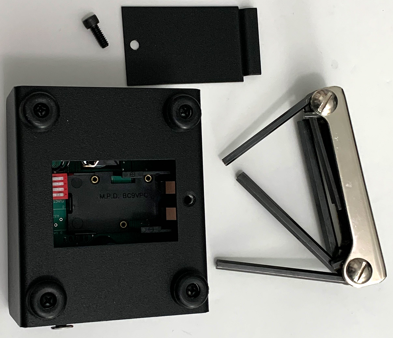 The only tricky part – and, if you read the instructions it isn’t that hard – is setting the dip switches. To do this, you need an Allen key (also called a “hex key”) to remove the bolt from the door on the bottom of the unit.