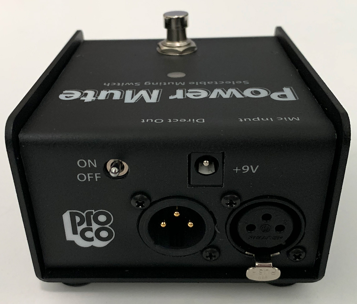 “Dip switches are used to select the desired Power Mute mode of operation from momentary push-to-talk, momentary push-to-mute to latching. To change the condition of the microphone signal, the user simply depresses and actuates the switch. In momentary mode, the condition will change when the switch is pressed and will revert to its original condition once the switch has been released. In latching mode, the signal condition will change when the switch is pressed and actuated. It will remain in that condition until the switch is depressed and actuated again. The switch on the Power Mute may either be actuated by hand or the unit may be used as a footswitch.” (ProCo website)
