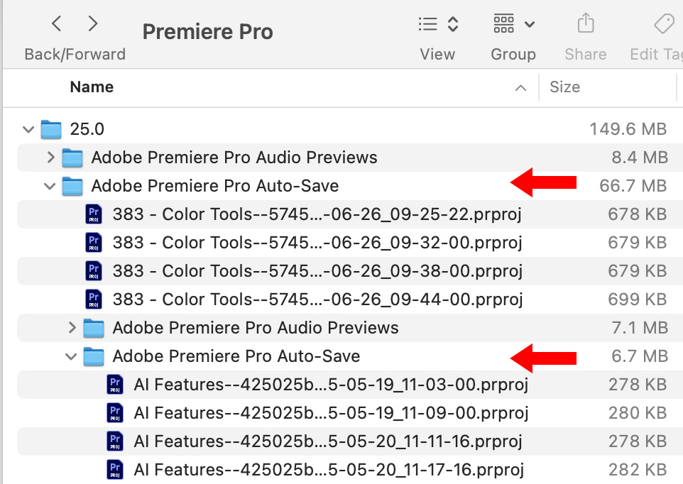 If you are like me, and don’t pay close attention to where you are storing your project files, you’ll probably find multiple Auto-Save and Backup folders nested inside other Auto-Save and Backup folders. Some spelunking will be necessary to find the Auto-Save or Backup folder holding the backups for your project.