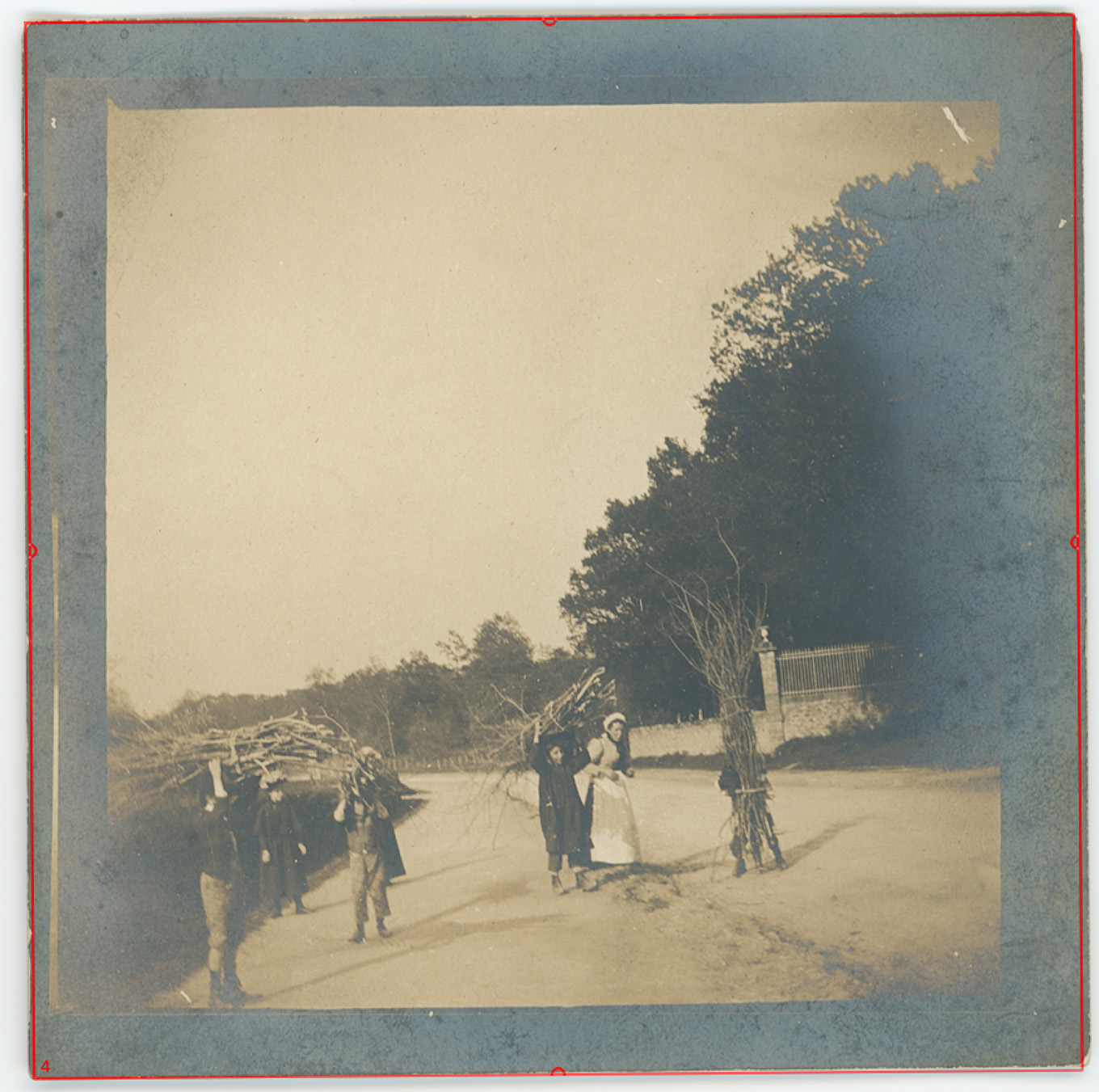 In this 1895 photos, children are gathering sticks and small branches for cooking stoves near Limoges, France.