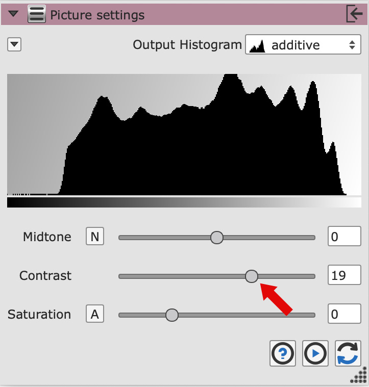 Here’s the secret sauce. In the Picture Settings menu, adjust Contrast to stretch the mid-tones. This significantly improves images which are all washed out by expanding mid-tones.