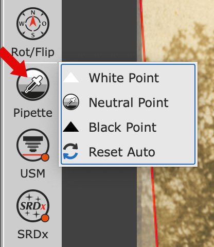 NOTE: While I try to get colors as close as possible, I leave final color adjustments to the NLE to make sure all shots look good together. Most of the time, I just remove color casts in the scan using the Pipette tool, selecting the Neutral Point option, then clicking something that’s supposed to be gray.