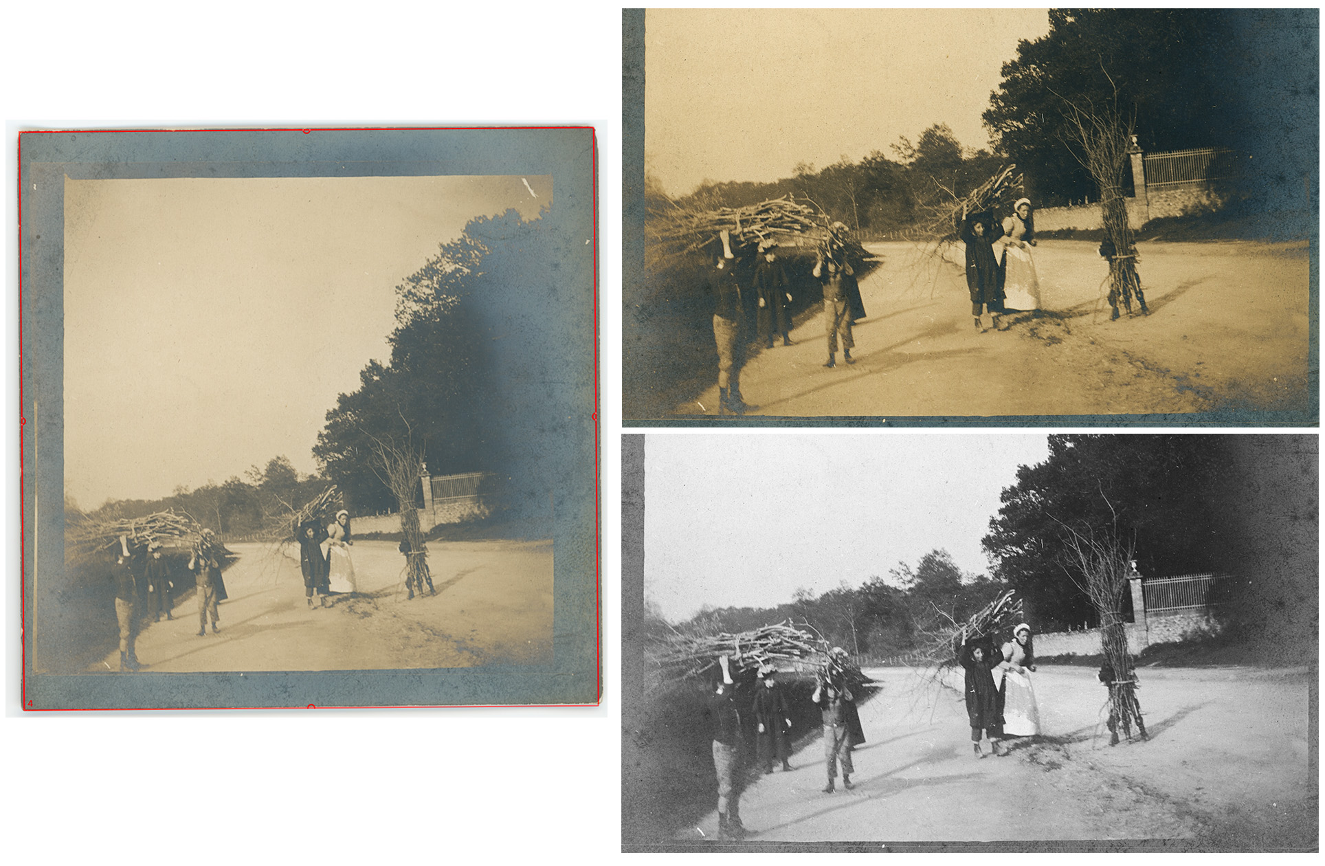 In this 1895 photos, children are gathering sticks and small branches for cooking stoves near Limoges, France.