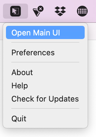 By default, a menu bar icon is installed which opens the main user interface (Main UI) and preference panels. The Main UI determines what we see in the popup menu when you right-click a file or the Finder.