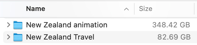 Let’s pretend I’m editing a ten-minute travelog on my recent trip to New Zealand. I have footage that I shot on scene and animated maps that show where I traveled around the two islands. These two media folders total 431.11 GB of media.