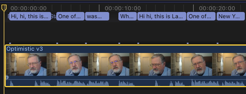 After a surprisingly short time, captions appear in the timeline. As with manually-created captions, these are linked to the source video.