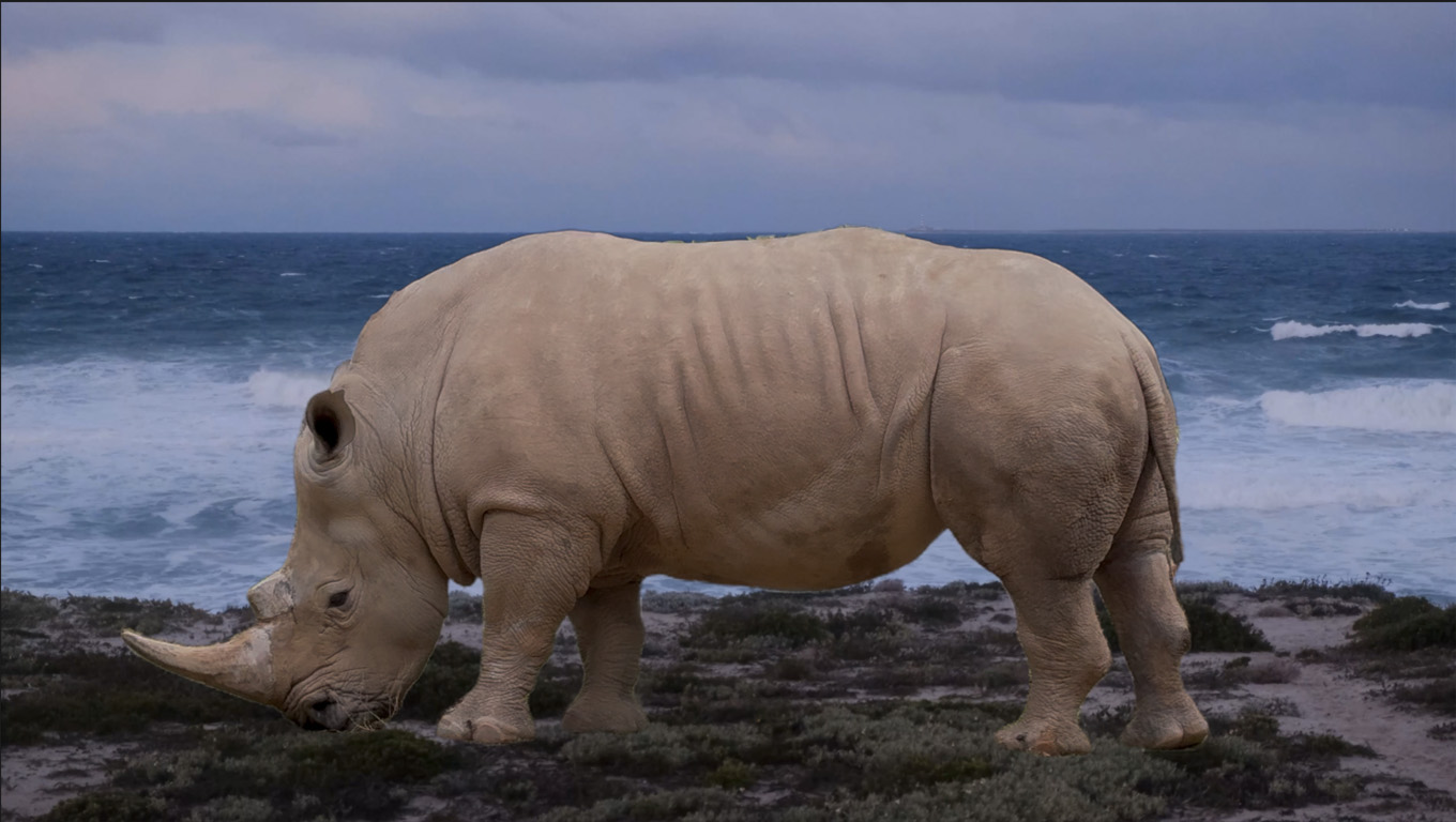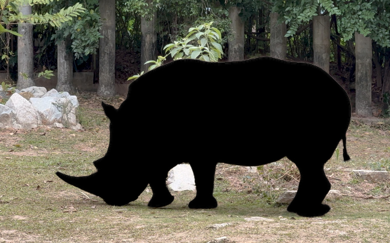 NOTE: The glow around the rhino is caused by blurring the background image, which also has the rhino in it.