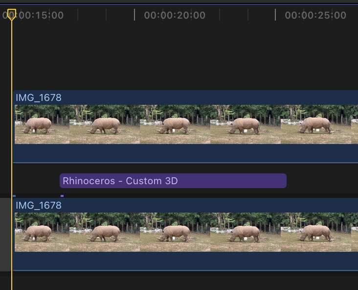 Then, copying the rhino clip, I placed the copy above the text clip.