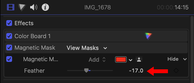 NOTE: The Magnetic Mask often creates a glitch on the frame where analysis starts. By placing the playhead on the first frame, it is easy to delete just that errant frame once the finished effect is created.