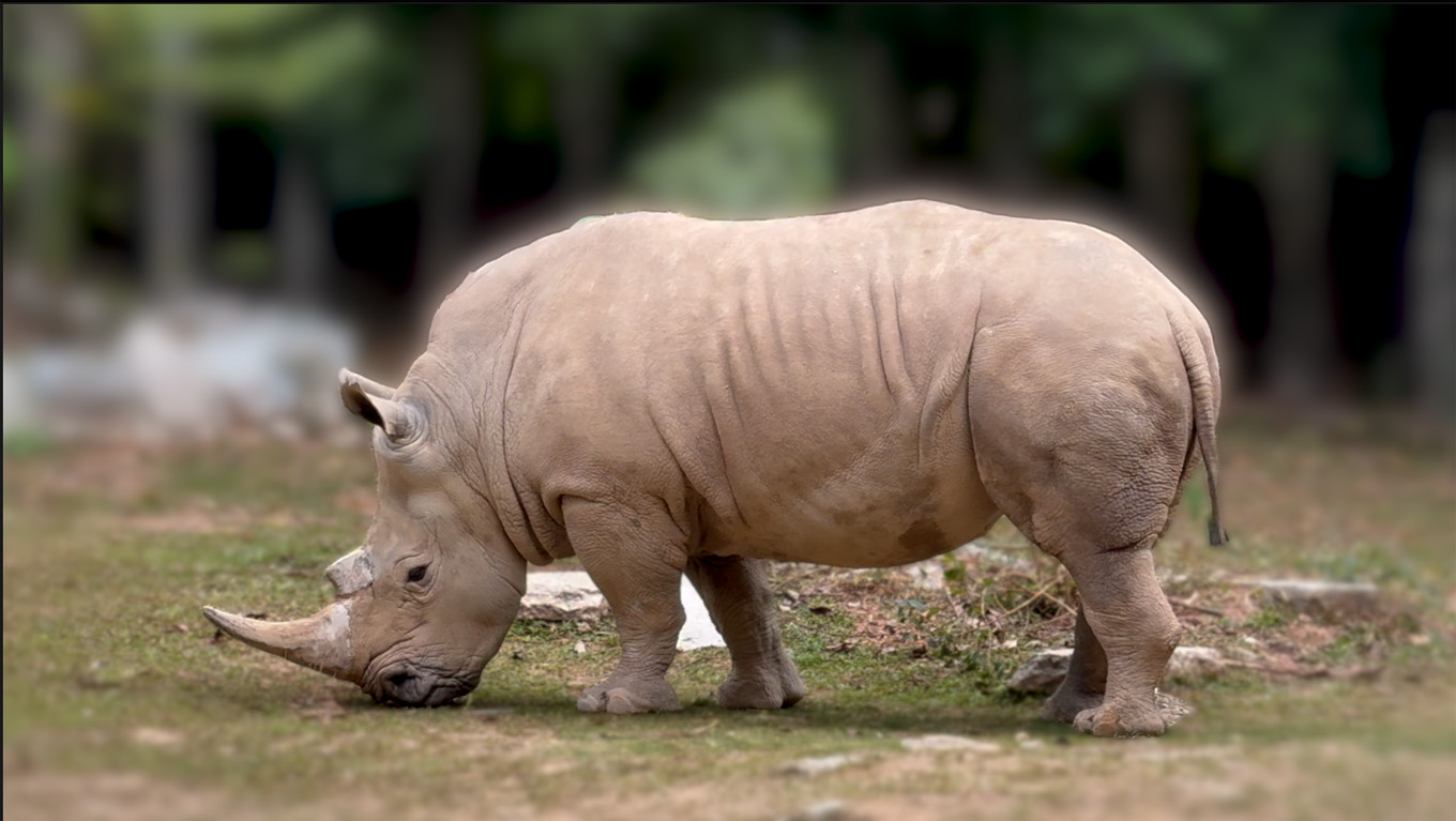 Say we want to emphasize the rhino in the frame by lowering the brightness of the area behind the rhino and add some blur to the background.