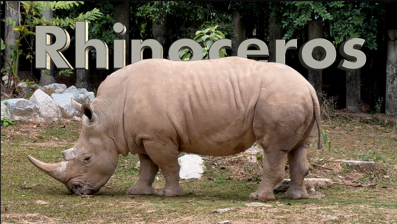For this example, I created a 3D text clip (mostly to show off, you can use any text you like), and placed it above the rhino.
