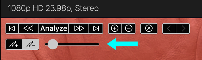 Select the Minus Paintbrush. While you could use the slider (cyan arrow) to adjust the circle size, an even faster option is to press the Shift key and drag the mouse until the circle is the size you want. Then, just like painting in Photoshop, drag where you want to remove the selection.