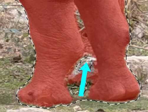 Hmm… There is an area between the hind legs where the mask is extending to include the background.