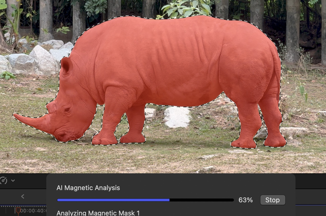 In Final Cut Pro, put the playhead on the first frame that displays the person/object/rhinoceros you want to select.