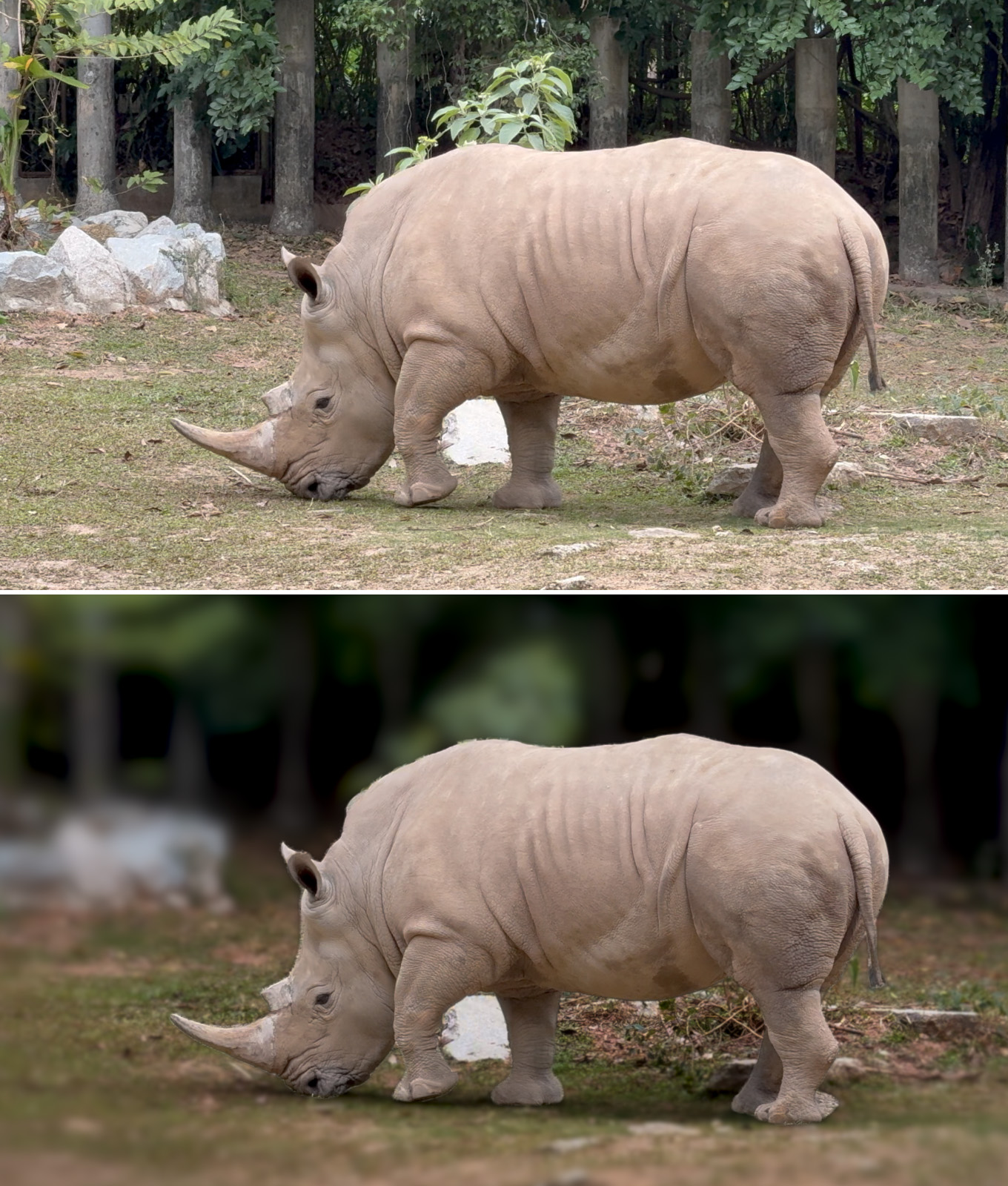 NOTE: The glow around the rhino is caused by blurring the background image, which also has the rhino in it.