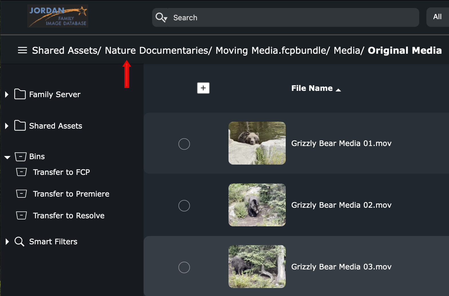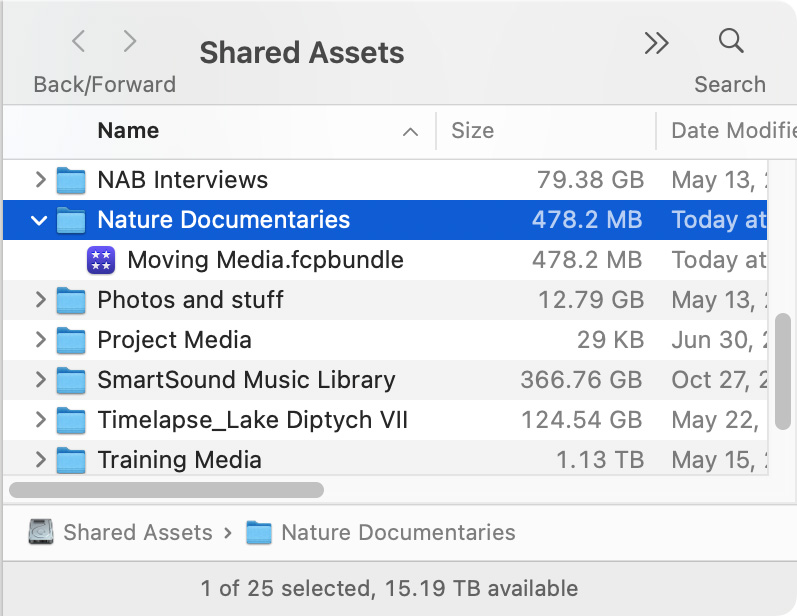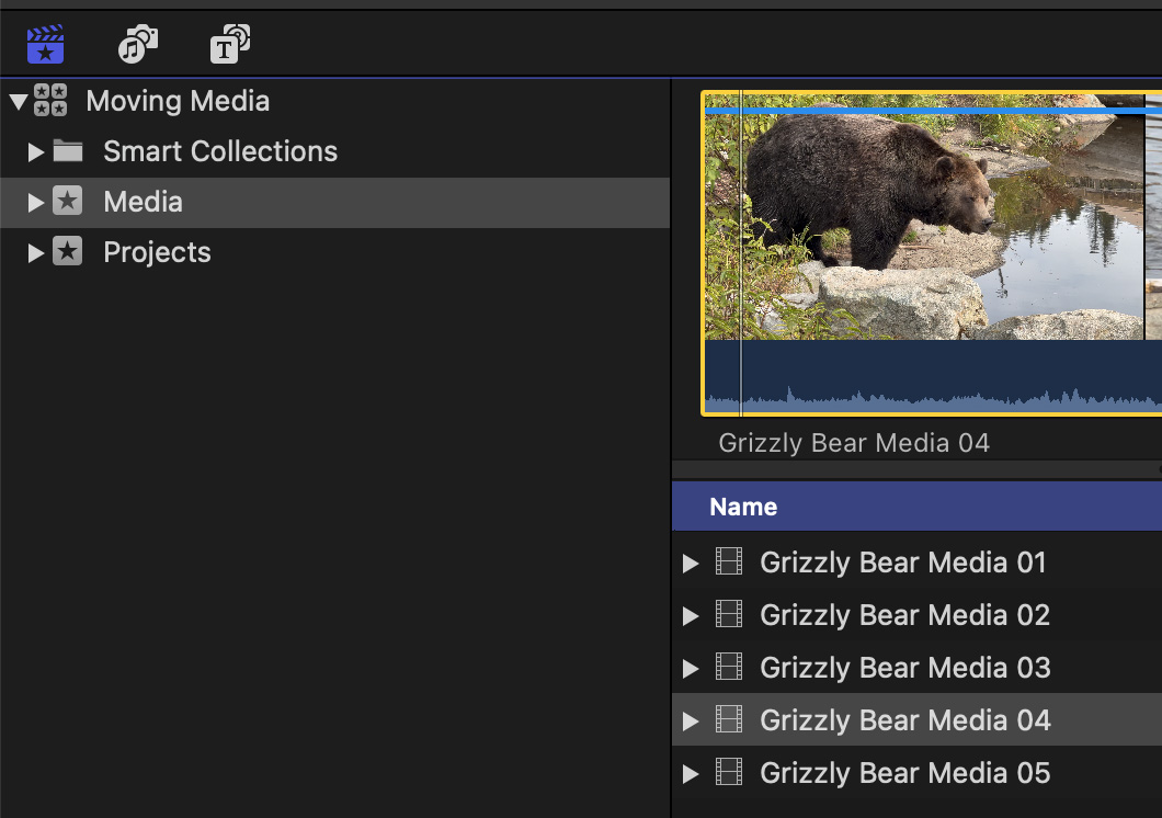 Here’s a library with media featuring grizzly bears. However, that media is stored inside a Final Cut Pro library. When you look at the library in the Finder, the media is not visible. Still, I want Axle to index that media for a future documentary on large, scary beasts.